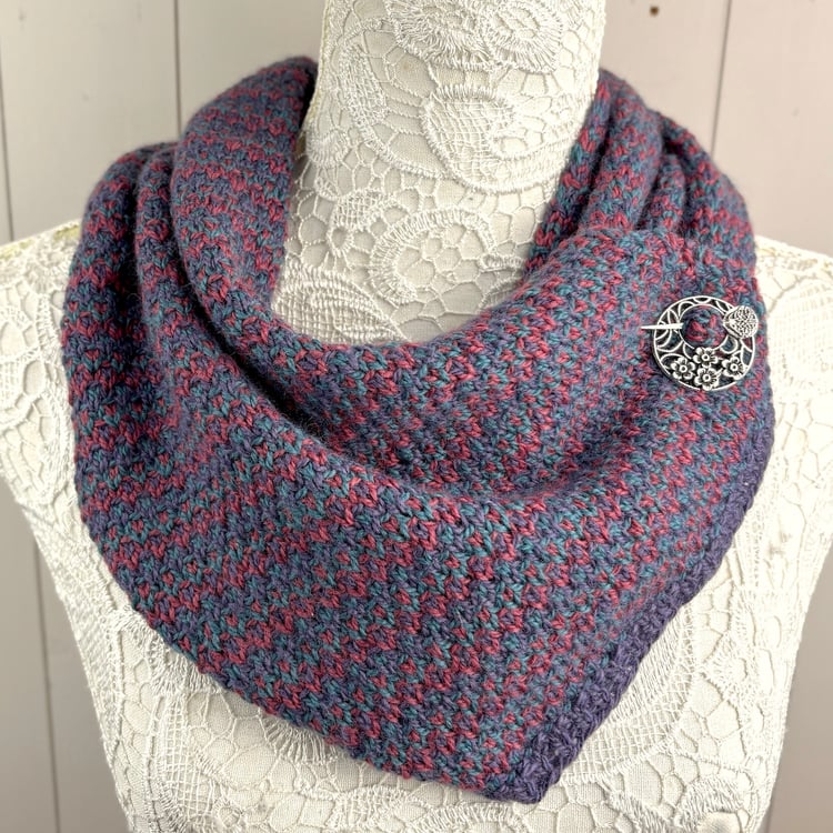 With this design I combined two of my favourite stitches which I think always sit nicely together - cables and moss stitch. I love the way this neck warmer effortlessly drapes around the neck, never losing the lovely stitch definition and it looks equally as good with or without a pin.